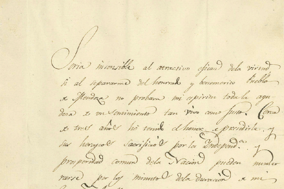 De escritura enérgica, con una soltura y una pluma que parece danzar con firmeza sobre el papel, en amplios trazos de bellos recorridos, asciende y desciende del renglón.
