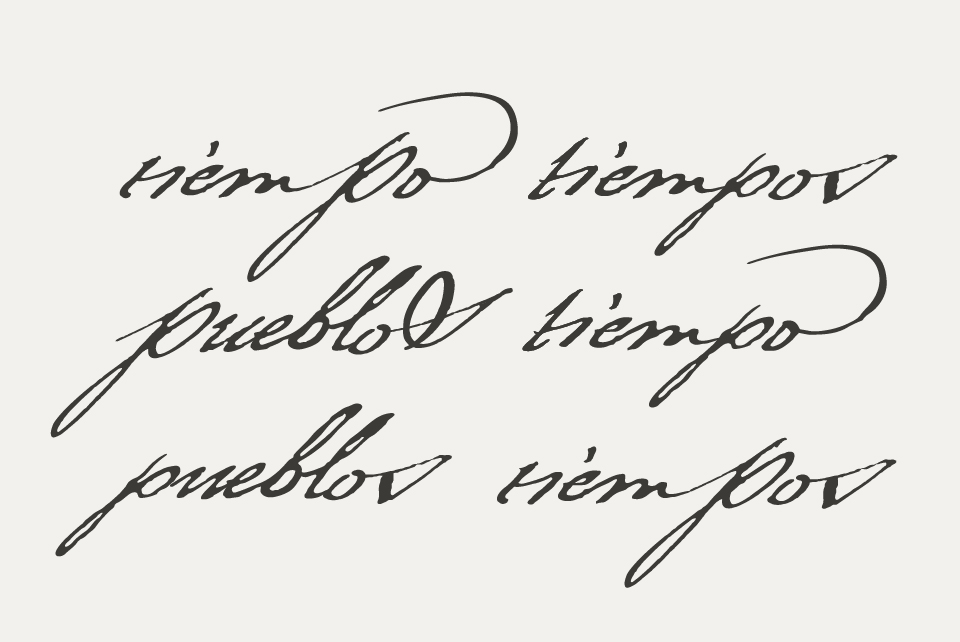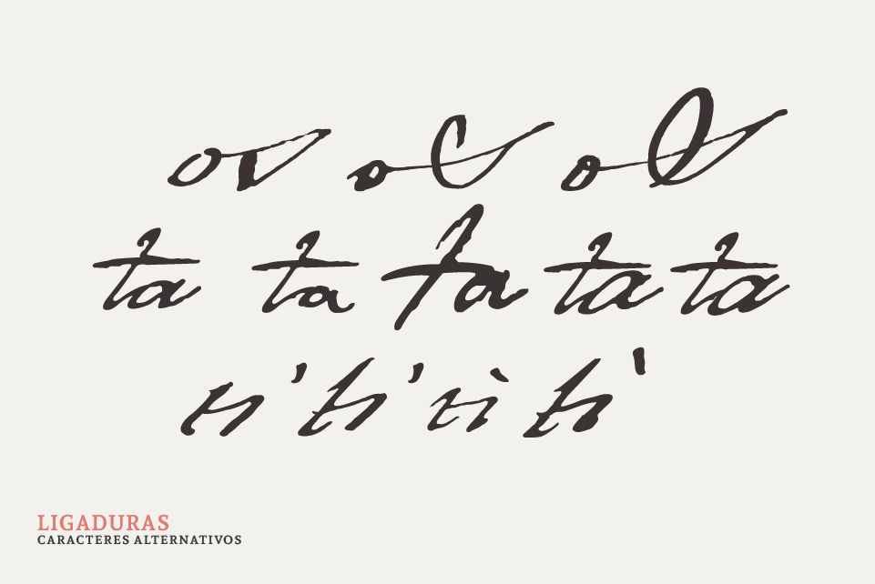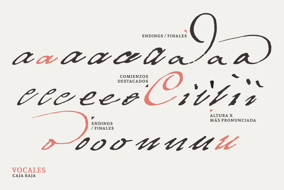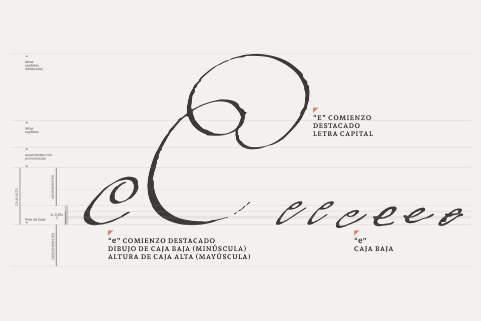Gran impronta en las terminaciones de palabras y más aún al finalizar el renglón con sus rasgueos o swashes para completar textos emblocados como se acostumbraba en aquellos días.