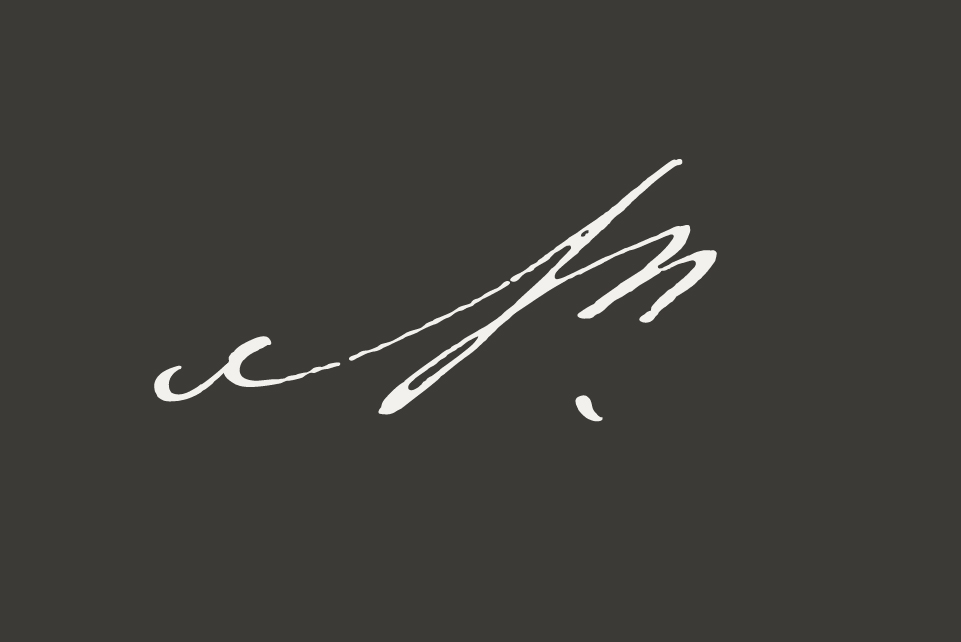 La “M” de caja alta, letra insignia de su apellido, posee un inicio destacado siguiendo las costumbres de la caligrafía de la época.