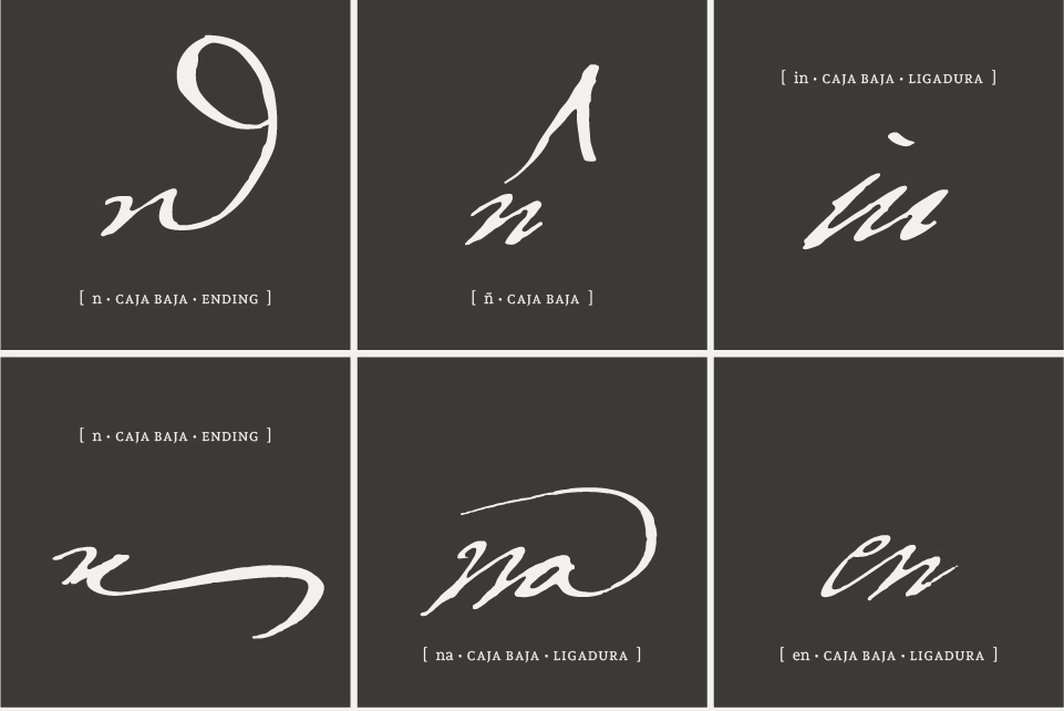 San Martín, la tipografía, cuenta con una amplia variedad de ligaduras y abreviaturas extraídas de documentos históricos originales.